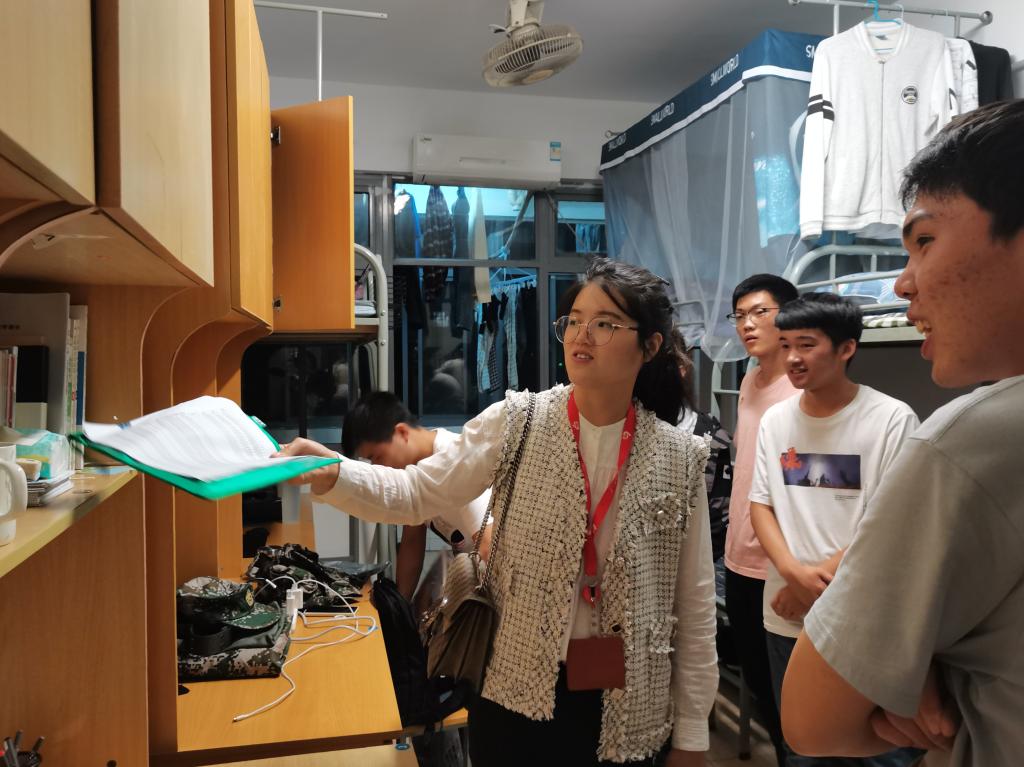 大学生军事训练是国防教育的重要组成部分,为给新生提前树立内务整洁意识,10月11日晚,星空xk官方网组织了一次内务检查与指导活动,2020级辅导员潘智琦、退伍老兵杨飞龙、部分班主任在各副班的陪同下深入新生宿舍。