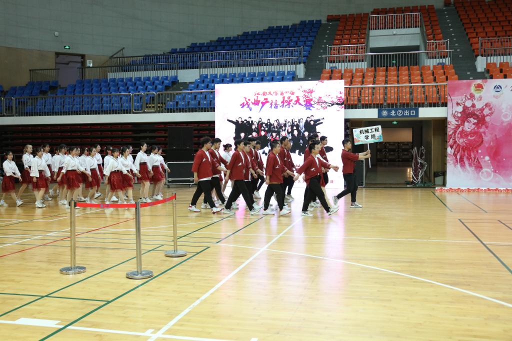 星空xk官方网代表队是第三个上前表演的队伍,领队同学喊出“齐步走!”的口令,参演同学们整齐地走上舞台,站好队形,鞠躬致意,动作一气呵成,给评委们留下了很好的第一印象;音乐响起,表演开始,我院代表队面带笑容,洋溢着自信,每一位同学都很努力地做好每一个动作,不仅展现出了传统戏曲的柔美古风,也不失广播体操的青春活力,他们的飒爽舞姿为戏曲广播操做了最好的诠释;最后,同学们喊出了“机械雄风,勇攀高峰”的响亮口号,展现出了机械学子奋勇向前、勇攀高峰的决心,台下观众频频鼓掌欢呼,同学们的表演很成功。表演结束后,评委老师根据各个学院代表队的表演进行打分并决定最终排名。经过一个月的辛勤付出,机械学子在本次戏曲广播操大赛中获得了三等奖的优秀成绩。