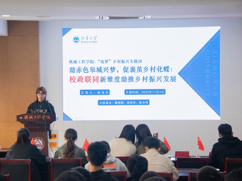 本次实践汇报会暨青马培训会邀请了“鼋梦”乡村振兴实践团、“械”逅发展成就观察团、“械”逅晓丰社会实践团、“助残 益路同行”乡村振兴实践团、小红蜻蜓实践团、红色记忆党史学习团进行汇报与分享。他们有的赴城乡观发展变化,实地感悟时代脉搏:“鼋梦”乡村振兴实践团来到大别山革命老区,参观红色基地与产业园区,走访乡村群众听社情民意。在调研中,他们感受到了乡村振兴战略给村民生活带来的显著改变。“械”逅发展成就观察团走进城市,通过企业探访、群众调研、城市发展调研,与民营制造业负责人进行交流,进入车间感受现代制造业工作环境,走进杭州博物馆、城市大脑等了解智慧城市的发展,进行民情社情调研,更好了解民众的反馈与愿景。他们有的进基层扶弱势群体,用爱心弘公益精神:“械”逅晓丰社会实践团走进无锡乡镇社区,以“留守儿童”为主要服务对象,开展为期两周的“五彩童年 红色记忆”夏令营活动,帮助社区留守儿童群体丰富假期生活,积极传播红色文化。“助残 益路同行”乡村振兴实践团在经开区太湖街道为精神障碍和智力障碍残疾人群体开展一系列的助残服务。团队走进残友家中访谈交流慰问,进公益组织参与友善产品协作,赴社会宣传推广公益精神。他们有的到红色基地听红色故事,缅先烈悟先进思想:小红蜻蜓实践团队围绕“喜迎二十大,永远跟党走,奋进新征程”的主题,通过参观红色基地、观看红色电影等加深“四史”的学习。红色记忆党史学习团队通过线上线下相结合的方式,进行党史集体学习,并赴家乡或周边地区进行了红色基地的走访。