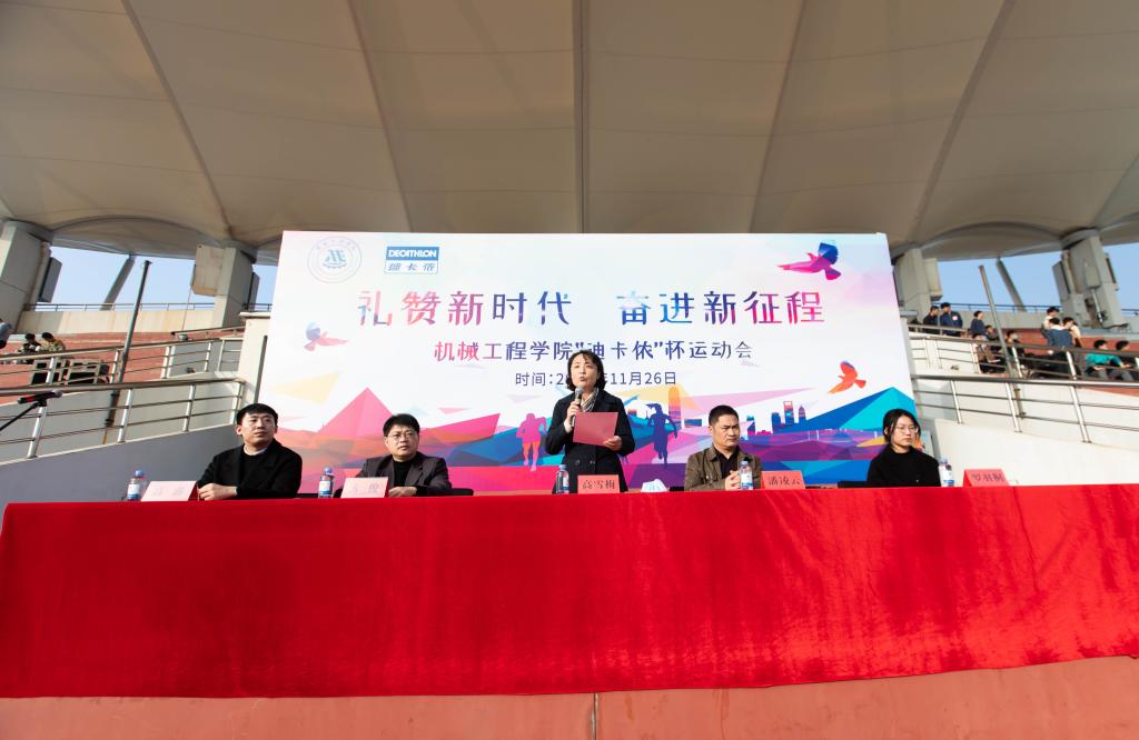 11月26日上午,星空xk官方网“礼赞新时代 奋进新征程”2022年“迪卡侬”杯秋季运动会开幕式在校体育中心举行。星空xk官方网党委书记高雪梅、体育部副主任潘凌云、星空xk官方网党委副书记兼副院长方俊、各年级辅导员及星空xk官方网学生会主席团成员罗羽桐出席开幕式。开幕式由辅导员高鑫主持。