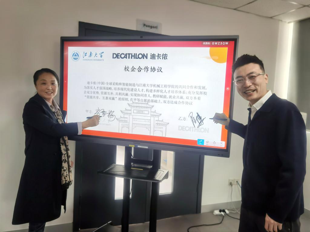 活动伊始,由双方代表致辞。迪卡侬中国金属制成采购总监兼苏州办公室总经理赵世坤对机械学院师生的到来表示热烈欢迎;2010届校友、中国生产部硬件类采购总监陈博表示,自双方开启合作以来,充分发挥了校企各自的优势,实现了资源互补、互利共赢、协同育人,希望以后将进一步加强与学院的合作,为企业吸纳更多以技术为背景的复合型人才。高雪梅代表机械学院对迪卡侬公司的热情接待表示感谢,并介绍了近年来机械学院在学科建设、人才培养等方面的发展概况,回顾了与迪卡侬公司在“卓工计划”实施、体育精神培育等多方面的成功合作历程,她指出,今后校企双方在大健康事业发展等方面可拓展更多的项目合作,互相支持、合作共赢。致辞结束后,双方再次续签了校企全面合作协议,谋求在学校新的一届任期,协商开展更多、长远的合作。