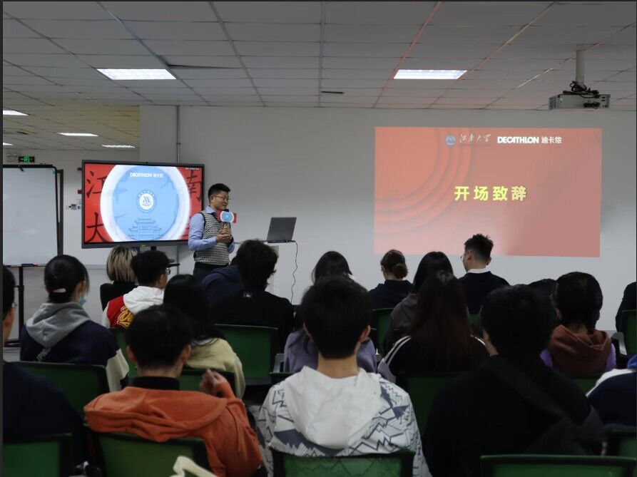 签约后,中国生产校企合作负责人吕云飞作专题报告,介绍了迪卡侬公司历史发展、产业布局、创新发展方向及未来战略等;2019届校友、迪卡侬供应链主管曲星茹结合工作经历,讲述自己从卓工实习生成长为供应链主管的故事。交流环节,在座同学从职业规划、能力培养和未来发展等方面纷纷提问,双方进行了热烈的讨论、互动。座谈会后,师生一行前往公司研发中心和生产工厂实地参观全产业链生产流程,深入了解公司产业发展和产品研发试验过程。