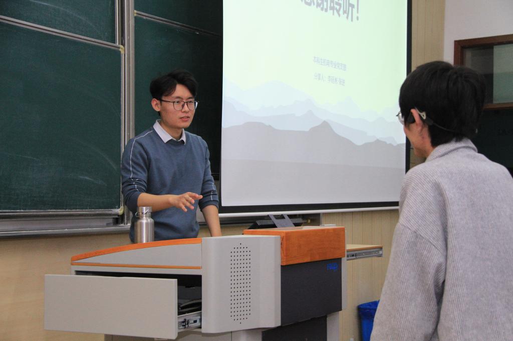 李延彬从论文定题、论文框架、论文填充和论文降重四个方面进行细致讲解,着重阐明了如何准确确定论文中的各章节标题及涵盖内容,向在座学生介绍了多种论文降重方法,并以具体设计项目为实例分享了软件算法类毕业设计论文写作方法。