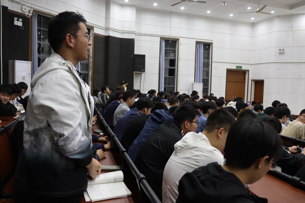 互动环节中,学生围绕“机械行业的未来发展”“人工智能与AI的发展是否会导致就业难”等问题踊跃提问,两位校友认真解惑,与在场学生展开讨论与交流。