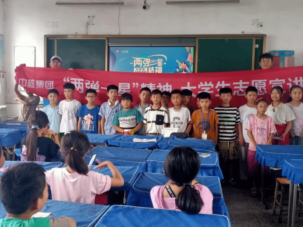 7月,实践团成员走进基层校园,将“两弹一星”精神、核工业发展史与自身实践所见、所闻、所感相结合,在黑龙江省雪乡中学、河南省李庄小学、湖南省八达小学等地开展科普宣讲活动,普及核电知识,传承核电精神。