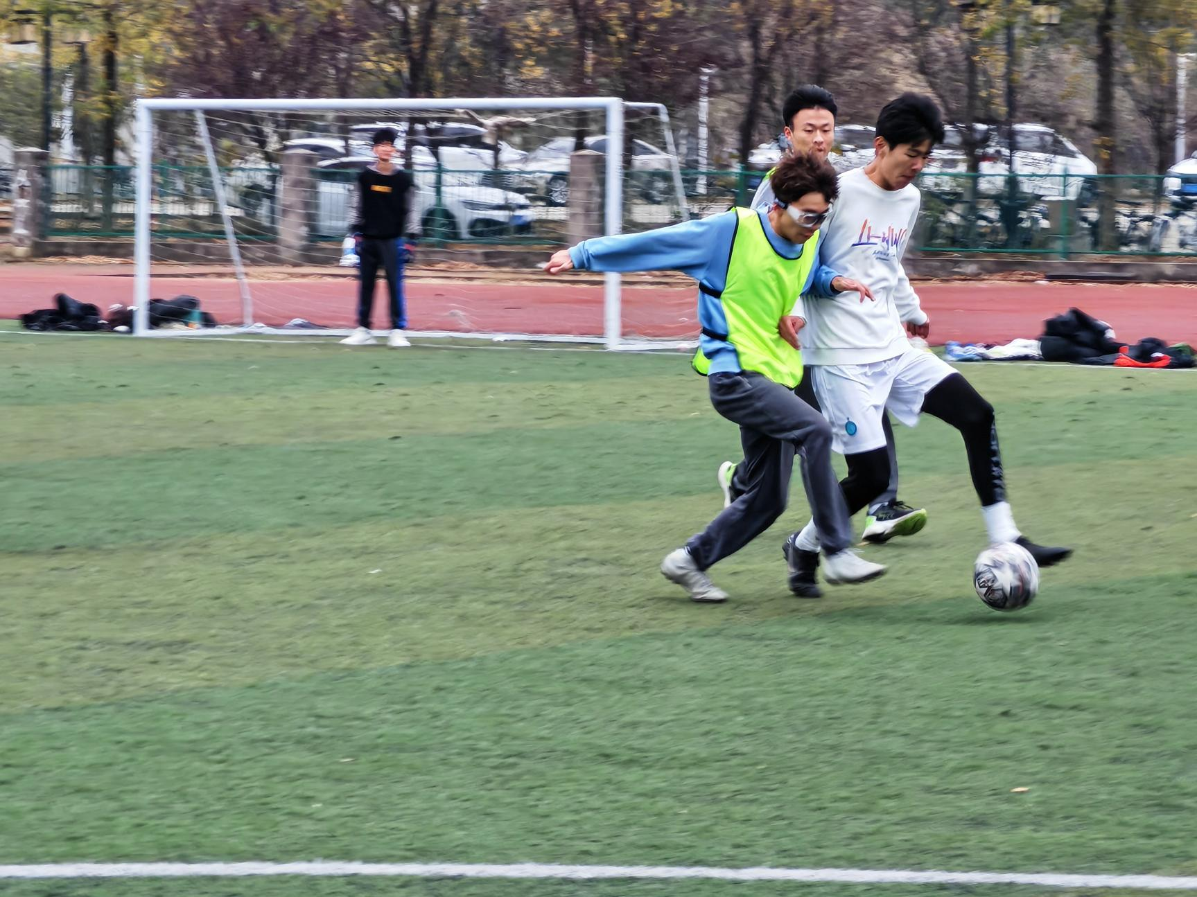 决赛现场,双方你来我往,互不相让,多次精彩进球令观众拍手叫好。灵动的身法,激情的碰撞,球员们的拼搏精神点燃了整个现场。激烈比拼之后,终场哨声响起,机器人一班以二比三的比分惜败机械五班,机械五班赢得了金秋足球赛冠军。
