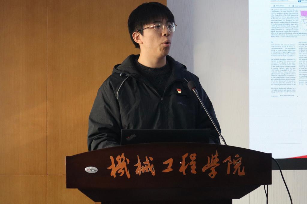 支部叶鹏、王鹏飞、彭鑫三位同学结合自身成长依次分享了对“智创时代机械学子应当如何作为”的思考。叶鹏本硕就读于星空xk官方网,本科期间参与工程实践与创新能力大赛获全国银奖。他从精益求精在竞赛实践中寻求突破的经历讲起,分享了从本科到研究生的身份转变与适应过渡,鼓励大家以平常心面对生活中的各种困难与瓶颈,不退缩、敢担当,以积极心态突破自己,成长成才。王鹏飞荣获2022-2023年度国家奖学金,是一名全面发展的机械体育人,本硕期间共斩获校运会金牌11枚。他分享了“无体育,不机械”的成长故事,讲述了机械田径队从低谷到壮大再到突破的历程。他认为体育对机械学子意义重大,不仅体现在强健体魄,更体现在磨练意志、坚定目标、敢打敢拼、团队配合的体育精神,鼓励大家成为有韧性的机械青年。彭鑫硕士期间发表论文两篇,授权发明专利一项,参与国家自然科学基金等项目,现已签约远景能源,投身新能源风电行业。他介绍了自己的研究方向,分享了自己在科研与就业中立足国家需求、投身智能制造的选择。他认为青年成长中最重要的是锻炼发现问题、分析问题、解决问题的能力,以及着眼国家需要、将个人成长融入社会发展全局的担当。