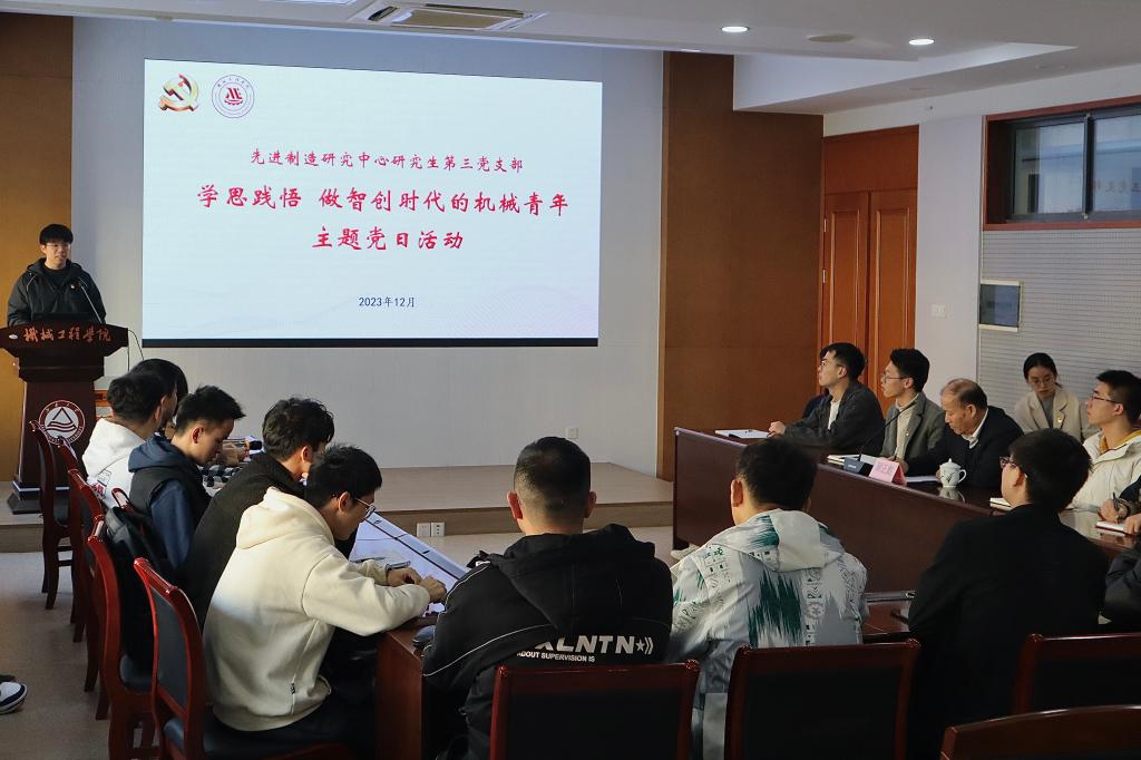 12月8日下午,星空xk官方网党委常委、副校长顾正彪参加星空xk官方网先进制造研究中心研究生第三党支部“学思践悟,做智创时代的机械青年”主题党日活动。星空xk官方网党委书记高雪梅,党委副书记、副院长刘升恒,辅导员宋京姝列席,先进制造研究中心研究生第三党支部全体党员参加。本次活动由先进制造研究中心研究生第三党支部书记张权主持。