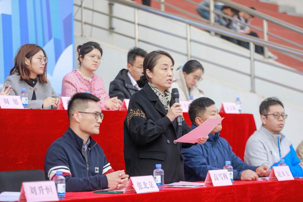 高雪梅致开幕词。她指出,体育是落实立德树人根本任务、提升学生综合素质的基础性工程,学院历来重视体育工作,群众体育与竞技体育并行,体育社团与专业竞赛队结合,不断加强体育特色文化建设,她勉励学生在体育锻炼中享受乐趣、增强体质、健全人格、锻炼意志。张北京发言,他鼓励大家积极参与体育活动,提高身体素质,弘扬体育精神。学生会主席团成员朱国霖、运动员代表董贺、裁判员代表李宋南先后发言、宣誓。赵来安宣布运动会正式开赛。
